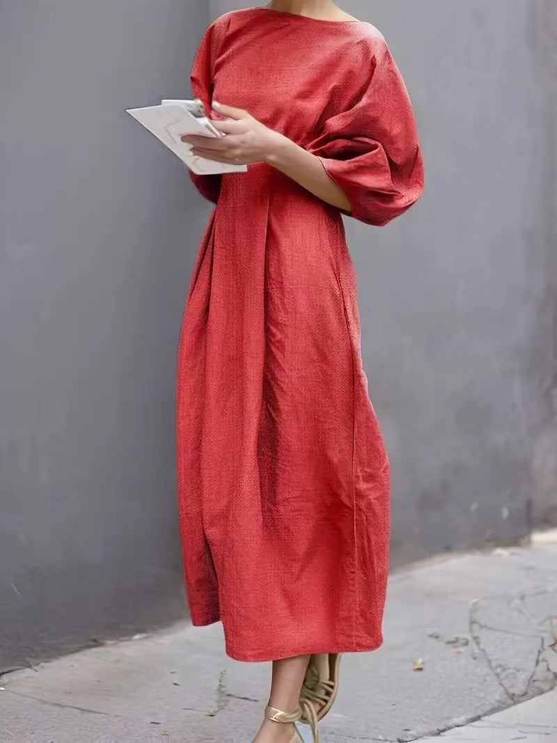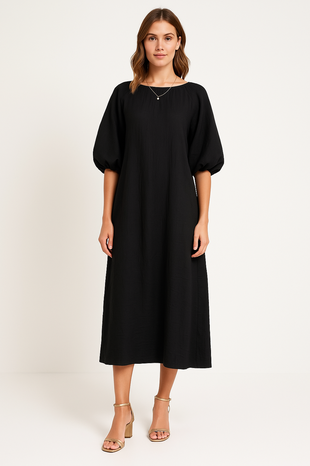Bold Minimal Dress | Volumineuze Mouwen | Tijdloze Midi