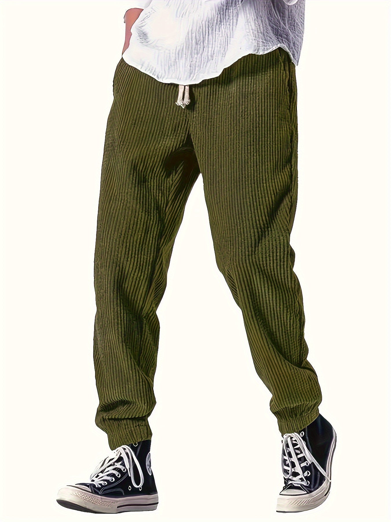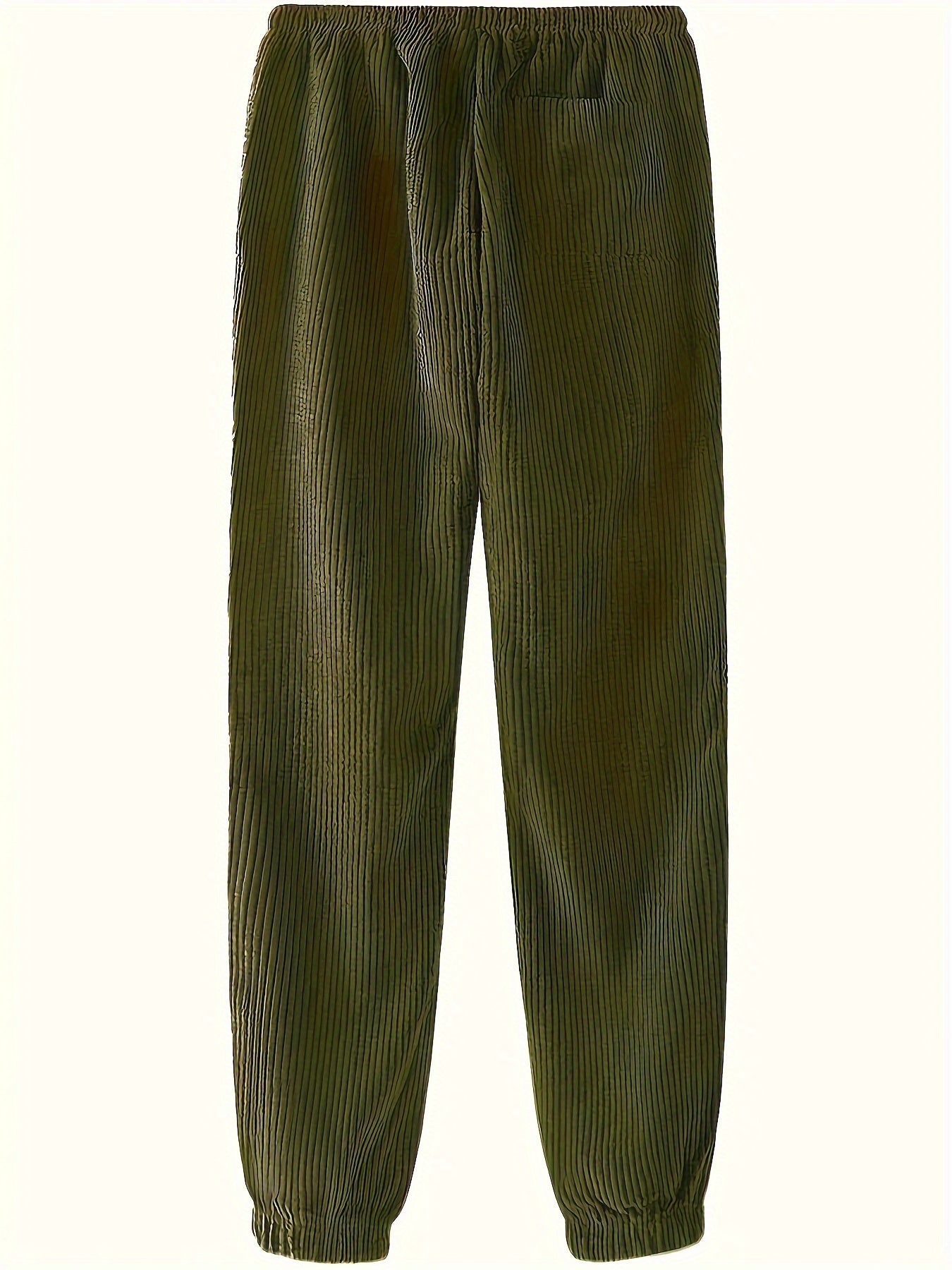 Combineer deze corduroy joggingbroek met een oversized hoodie en sneakers voor een trendy streetwear-look. Voor een casual en comfortabele outfit draag je hem met een basic T-shirt en een spijkerjack. Perfect voor dagelijks gebruik, ontspannen dagen en urban fashion.