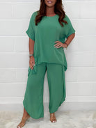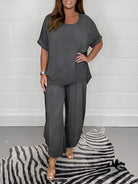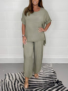 Draag de Lounge Flow Set met slippers voor een ontspannen dag thuis, of combineer met sandalen en accessoires voor een casual-chic look onderweg. Ideaal voor vakantie, relaxmomenten of een laid-back weekendstijl