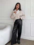 Rebel Pant | Geplooide Wide-Leg | Zwarte Faux Leather Look
