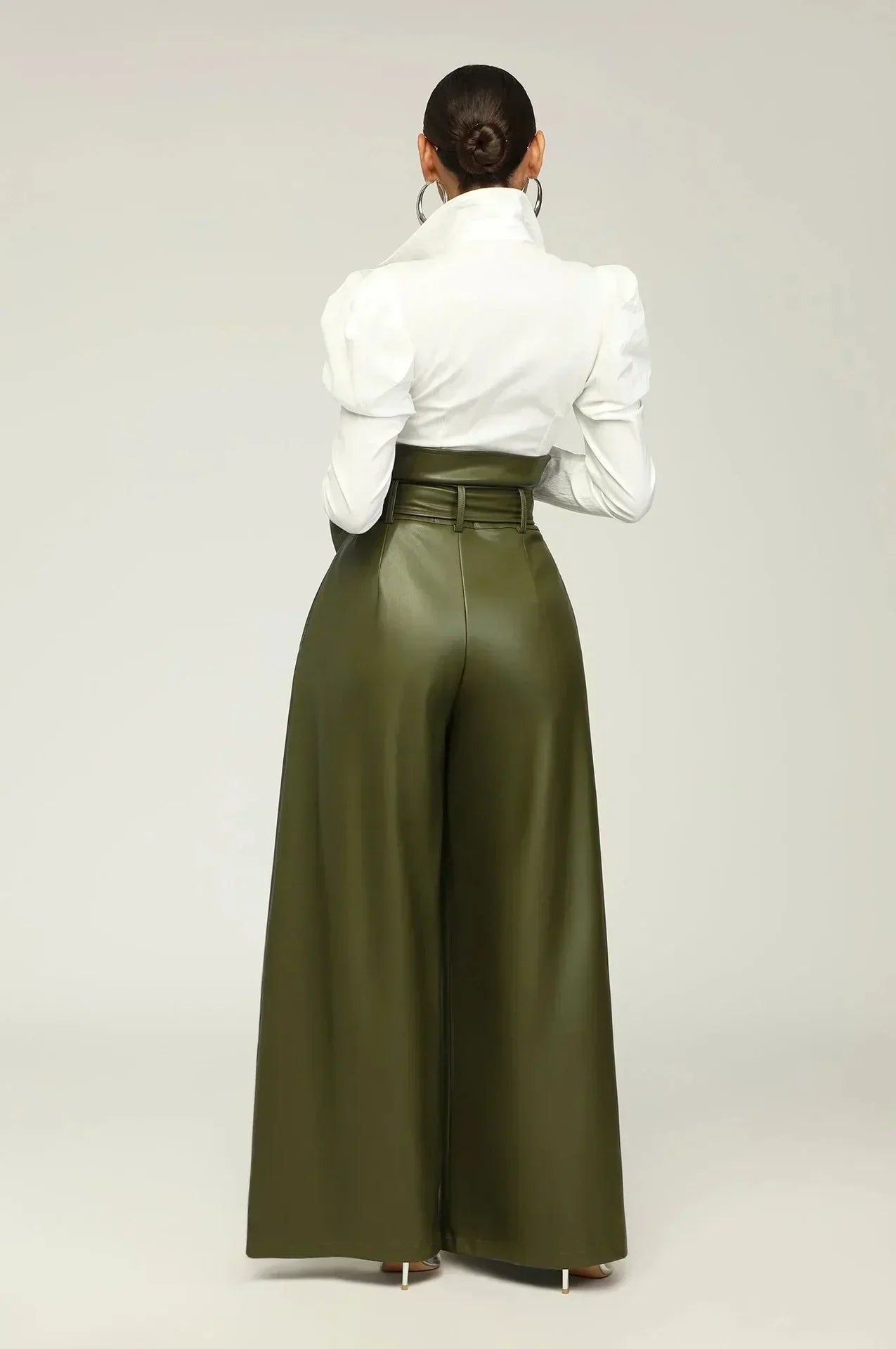 Verona Luxe Pant | Geplooide Wide-Leg | Statement Lederlook