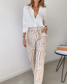 Combineer de Vista Pant met een witte blouse of basic top om de print te laten spreken. Voeg hakken of sandalen toe voor een elegante touch. Perfect voor een brunch, vakantie of creatieve werkdag