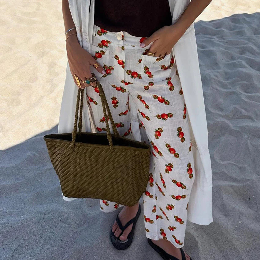 Island Linen Pant | Boho Wide-Leg | Elastische Enkelboorden