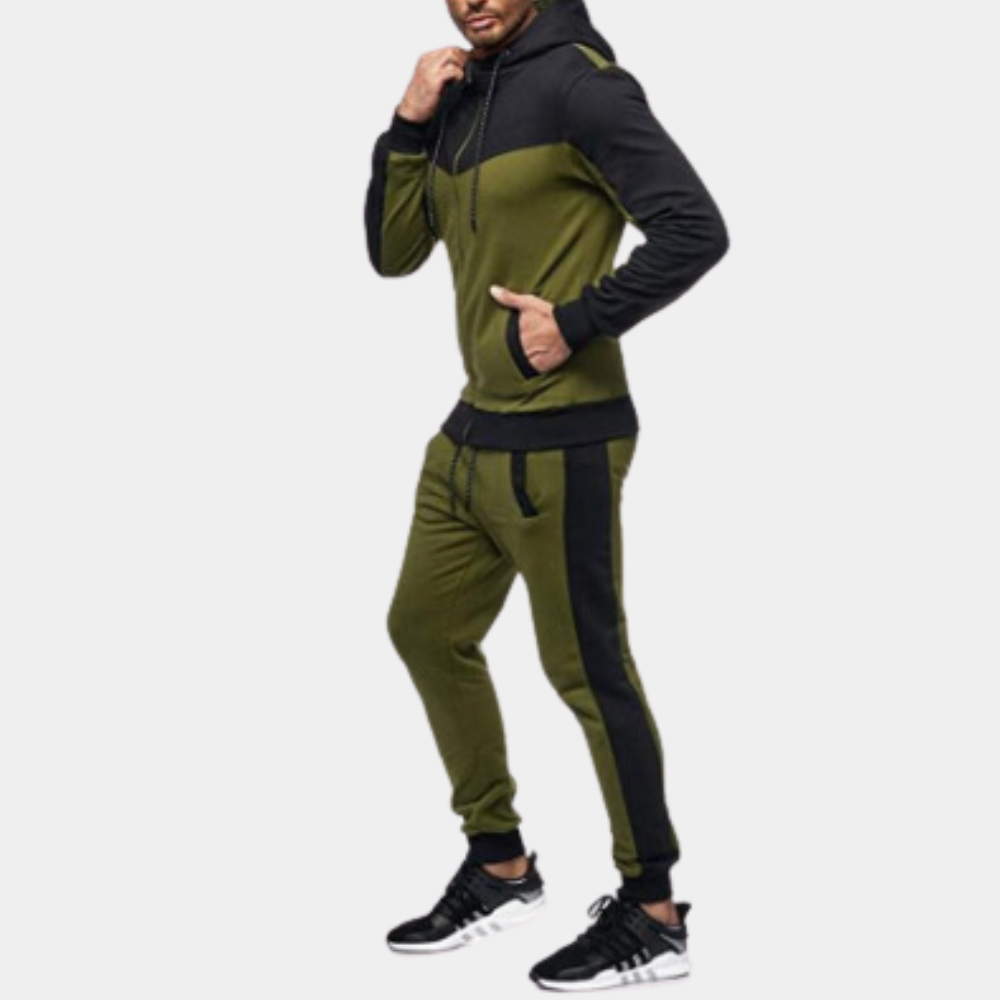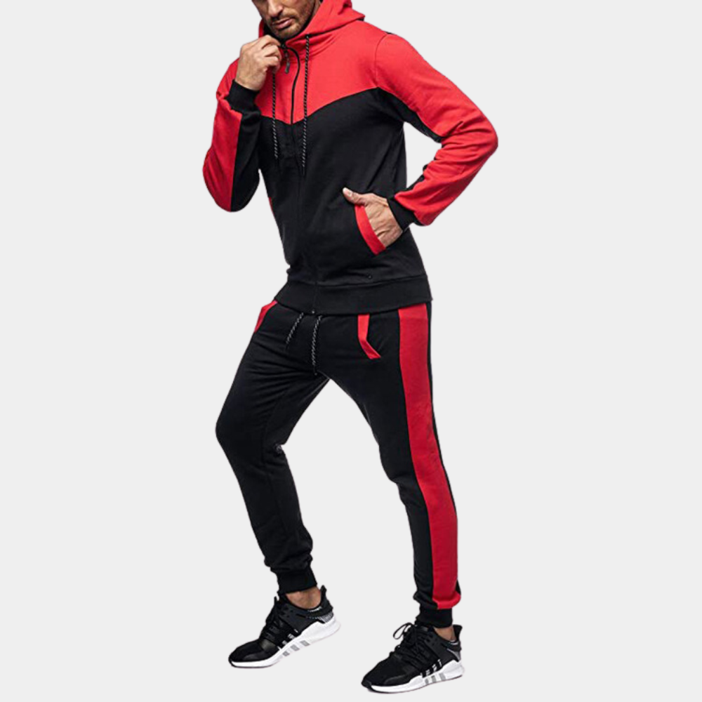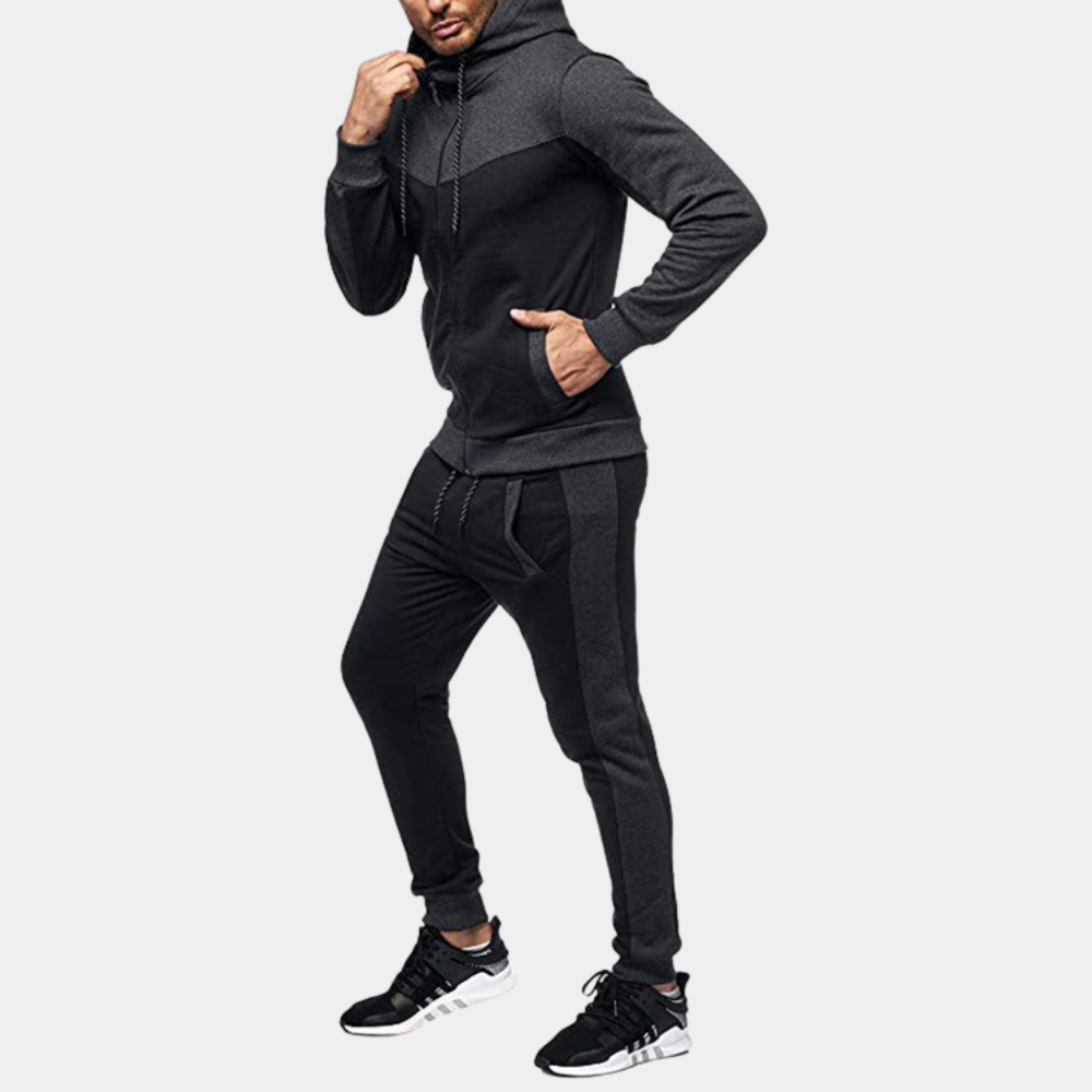 Heren Sportieve Trainingspak Set | Capuchon & Jogger | Contrasterende Panelen & Slim Fit