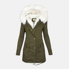 Elegante Parka Winterjas met Witte Bontkraag – Dames