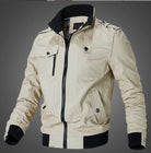 Details: Opstaande kraag, ritssluiting, borstzak met sluiting, zijzakken, elastische manchetten en zoom