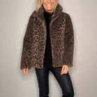 Voeg een speelse touch toe aan je wintergarderobe met deze opvallende panterprint jas. Gemaakt van zachte faux fur, biedt deze jas zowel warmte als stijl. De rechte, relaxte pasvorm en hoge kraag maken het een moeiteloos fashion item, perfect om over elke outfit te gooien.
