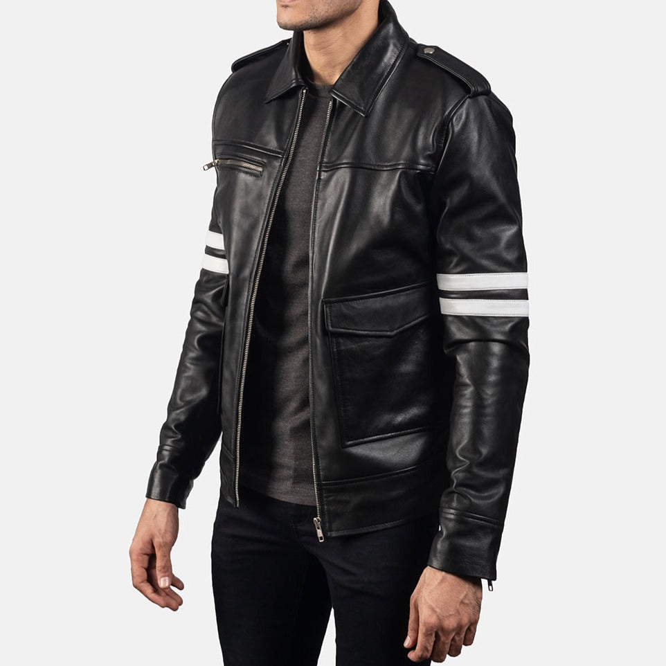 Heren Bikerjas van Kunstleer | Contrasterende Strepen | Motorsport Inspired
