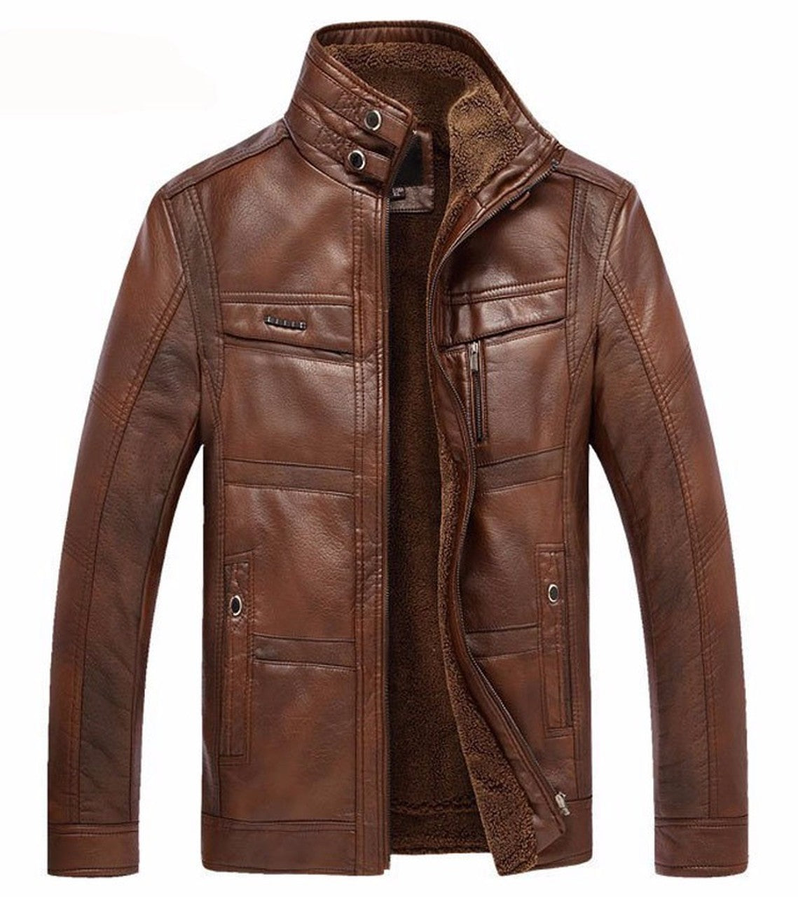 Heren Jas van Kunstleer | Warme Voering | Opstaande Kraag