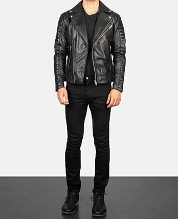 Heren Kunstleren Bikerjas | Asymmetrische Rits | Ribbelmouwen