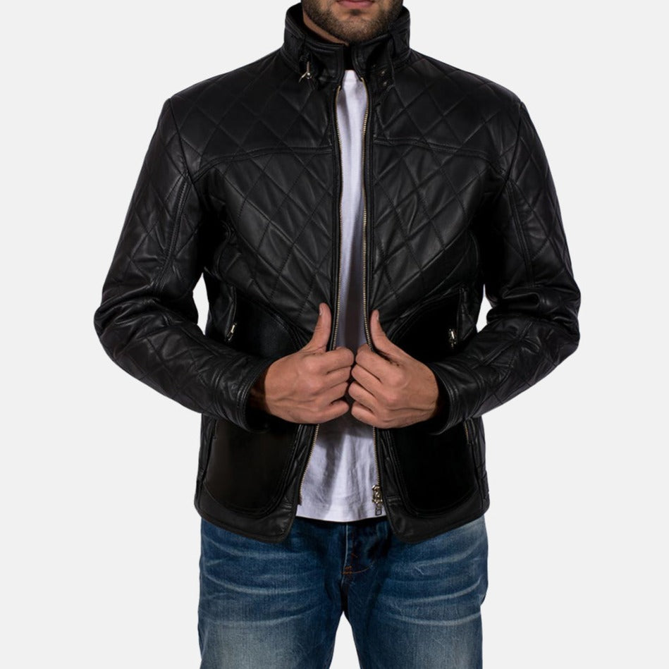 Heren Kunstleren Jas | Diamantstiksel | Statement Design