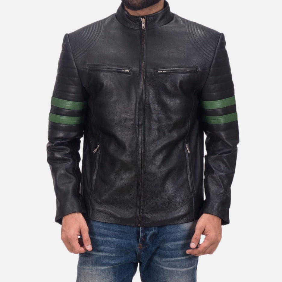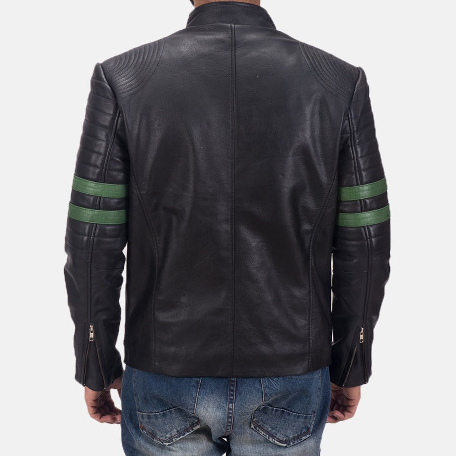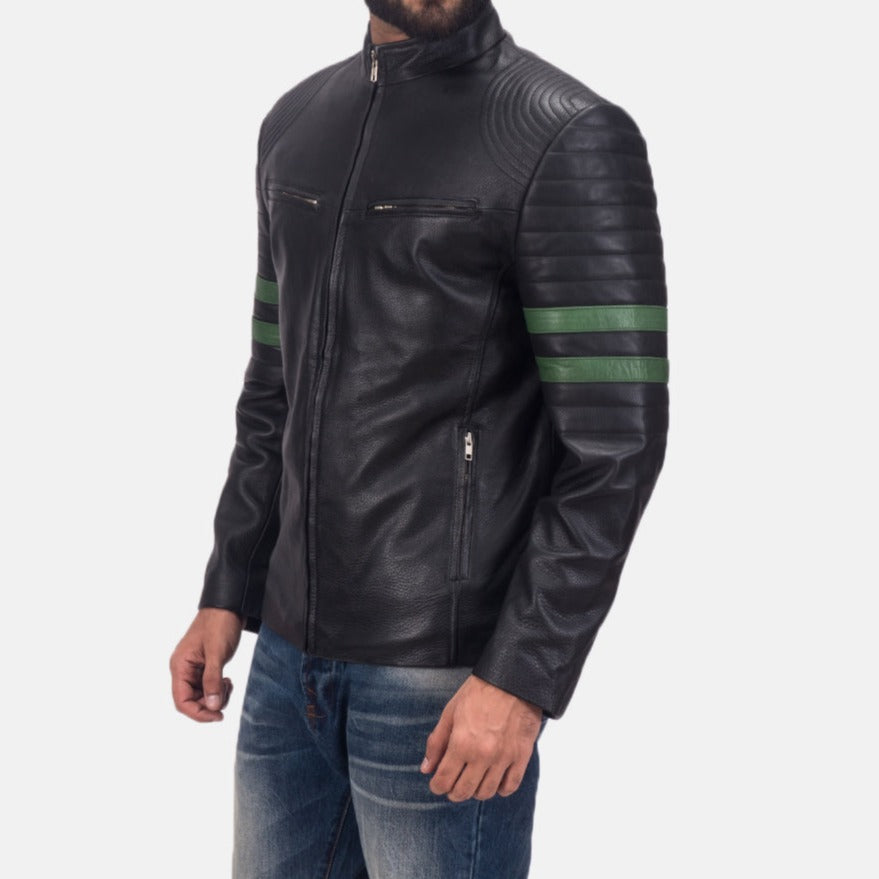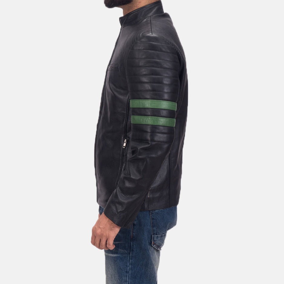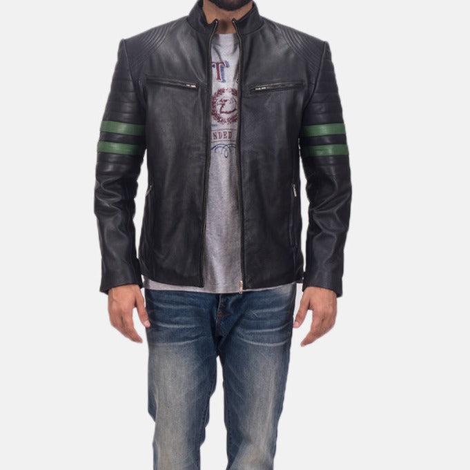 Heren Kunstleren Jas | Groene Strepen op Mouwen | Racerstijl