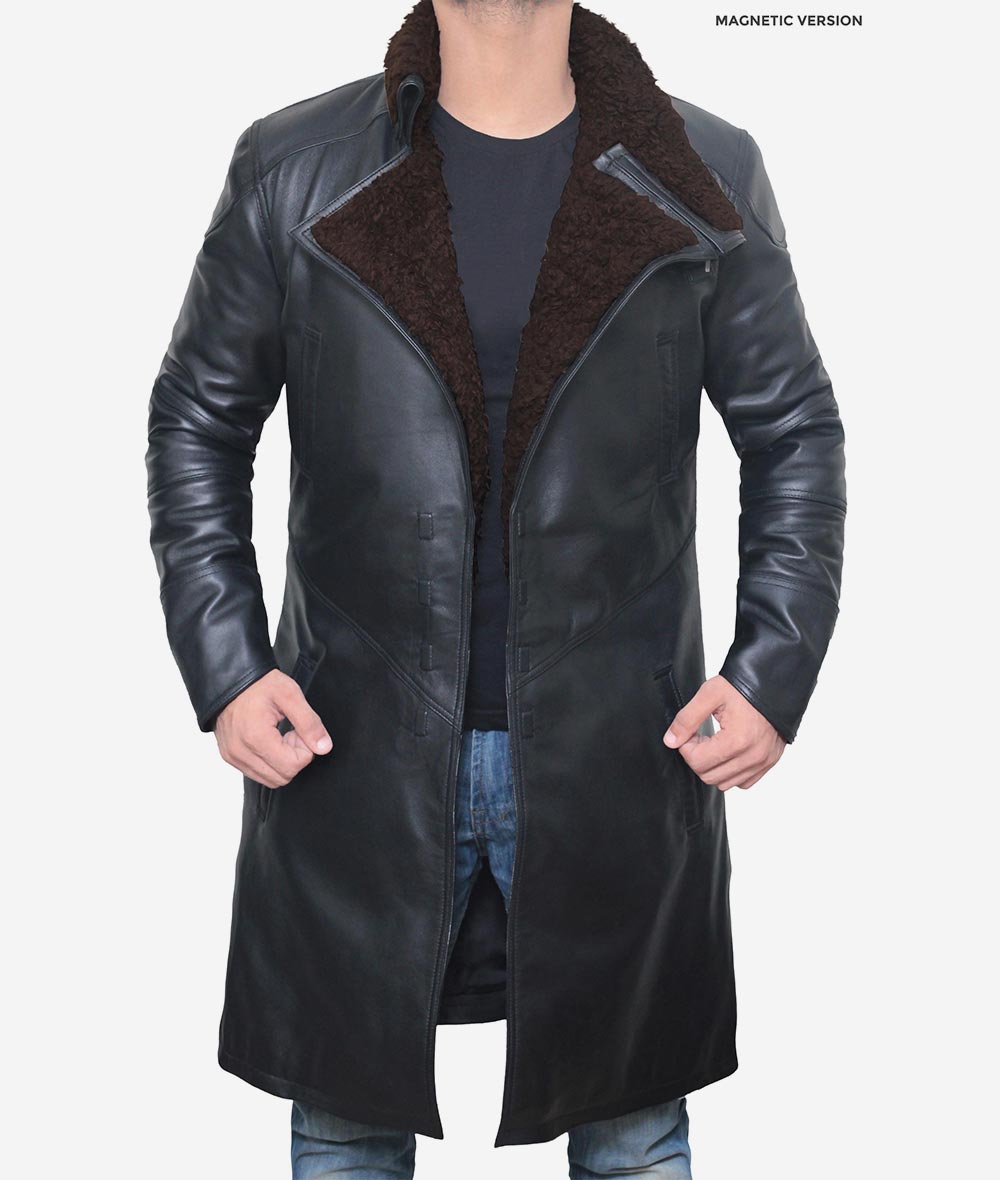 Heren Lange Jas van Kunstleer | Bontvoering | Moderne Winterstijl