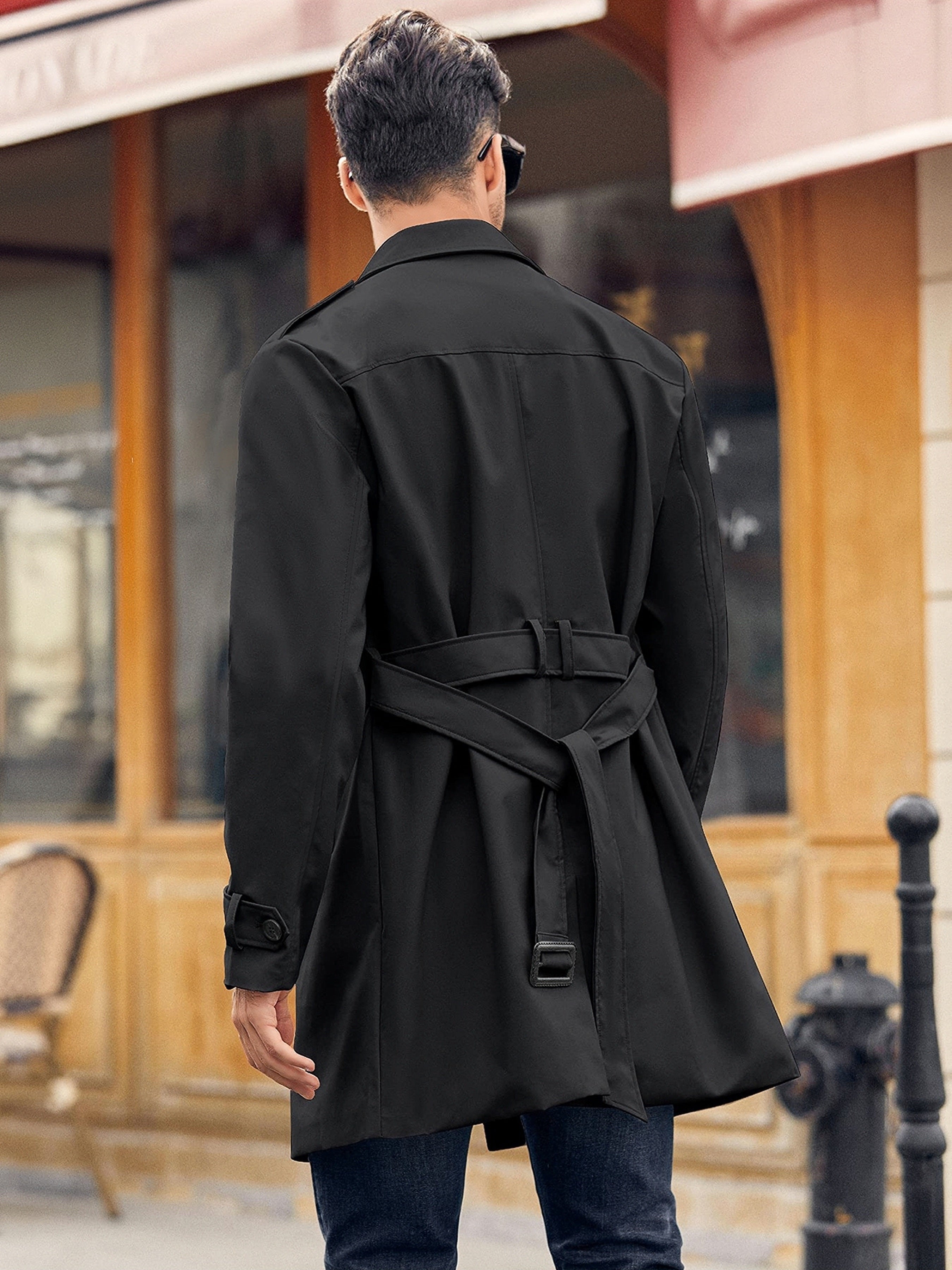 Deze klassieke heren trenchcoat is een must-have voor een elegante en tijdloze look. Het gestroomlijnde ontwerp en de hoogwaardige afwerking maken deze jas perfect voor zowel formele als casual outfits. De trenchcoat heeft een dubbele rij knopen en een ceintuur om de taille te accentueren, wat zorgt voor een verfijnde uitstraling.