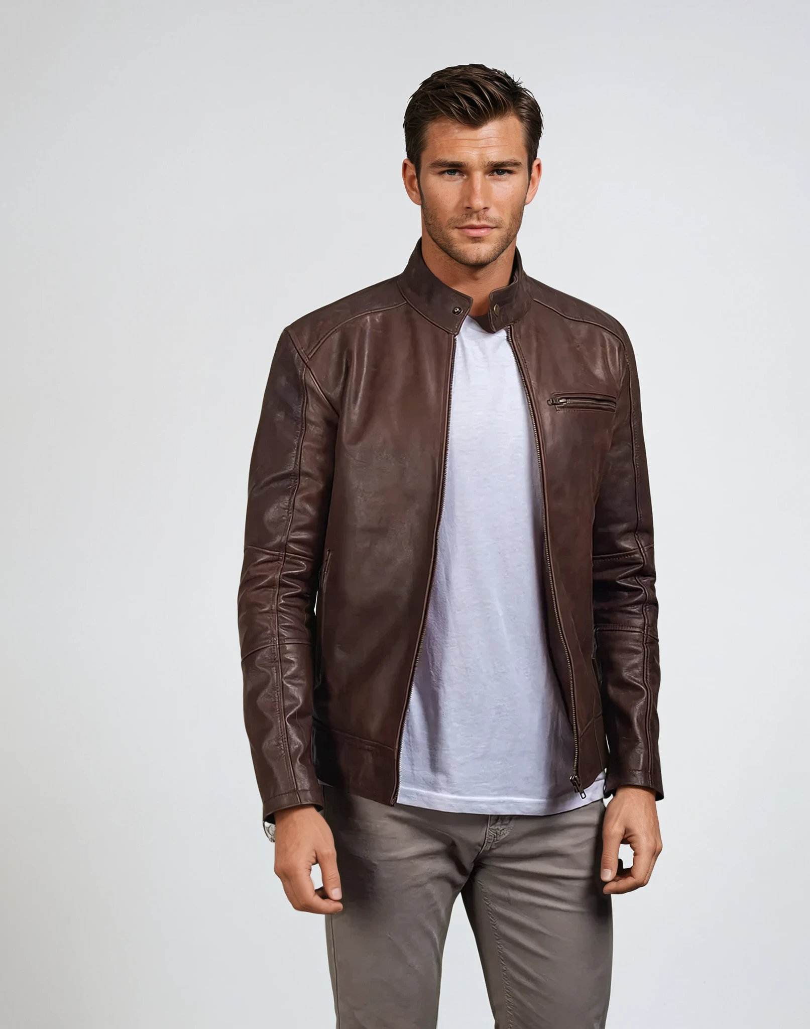 Deze bruine leren herenjas combineert een moderne pasvorm met een klassieke bikerlook. Gemaakt van hoogwaardig imitatieleer, biedt hij zowel comfort als duurzaamheid. Perfect voor de herfst, winter of frisse lentedagen – een must-have voor elke garderobe.