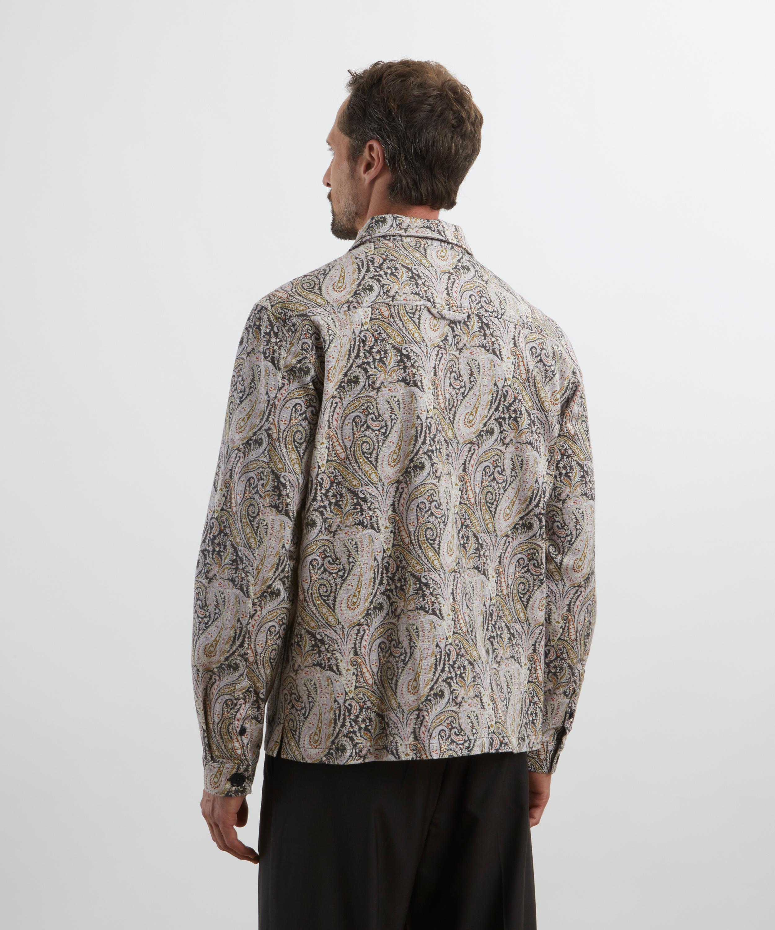 Het Mirage Paisley Jacket is een statement piece met een uitgesproken karakter. De zandkleurige basis wordt verrijkt met een artistiek paisley-patroon in gedempte tinten, wat het jasje een eigentijdse, bohemien flair geeft. Dankzij de relaxte pasvorm en zachte stof is het ideaal voor zowel casual als creatieve styling.