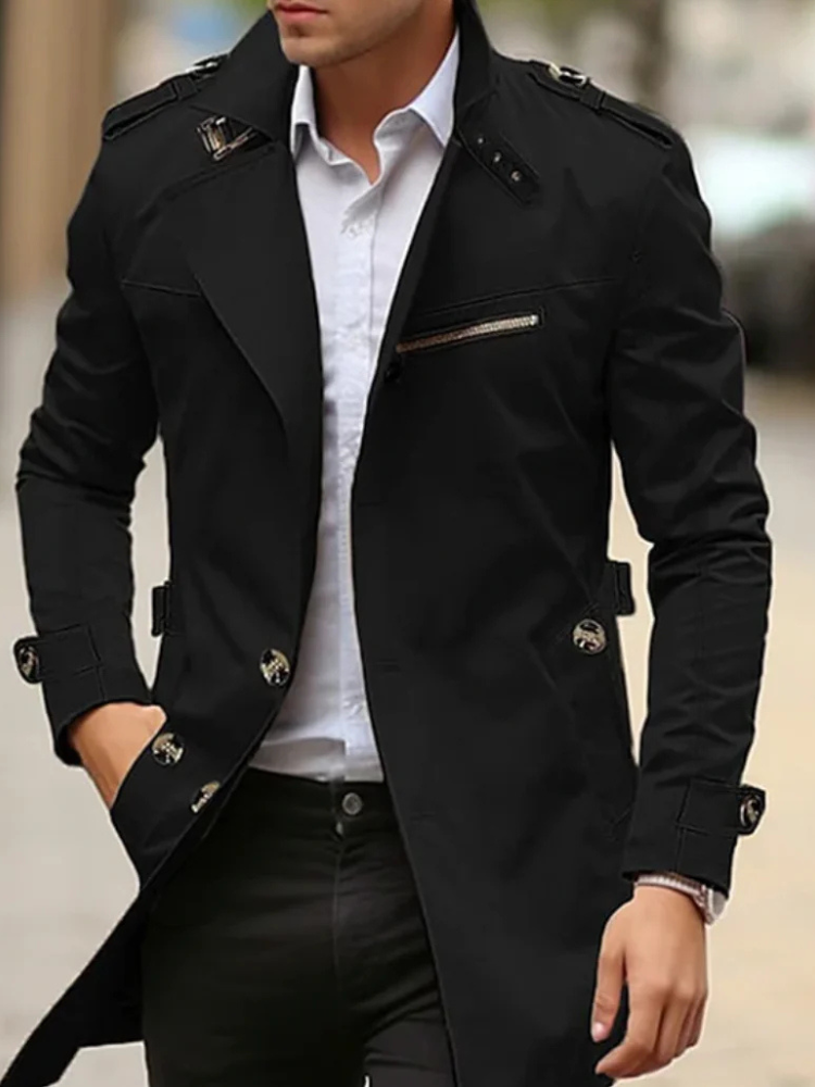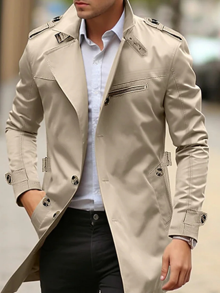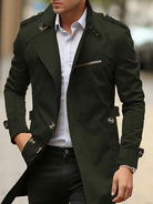 De Milano Trenchcoat straalt verfijning uit met een moderne, slanke snit en subtiele militaire details. Deze jas is ontworpen voor de stijlvolle man die houdt van een strakke look met klasse. De epauletten, asymmetrische rits en verstelbare mouwriempjes zorgen voor een elegante doch krachtige uitstraling. Verkrijgbaar in tijdloze tinten zoals legergroen, marineblauw en beige – perfect voor zowel zakelijke als casual settings.