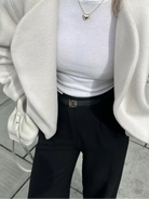 De Silky Wrap Blazer straalt pure klasse uit met een moderne twist. Gemaakt van een luxe, glanzende stof en voorzien van een strikceintuur, biedt deze blazer een vrouwelijke, verfijnde look die moeiteloos chique oogt. Perfect als statement piece voor zowel zakelijke afspraken als stijlvolle avonden.