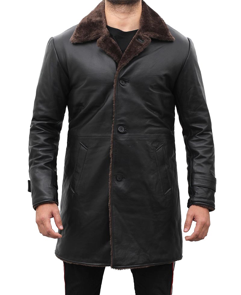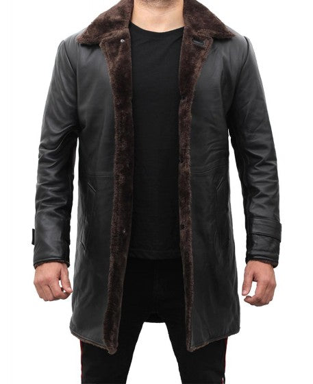 Heren Lange Jas van Kunstleer | Bontvoering | Klassieke Winterlook