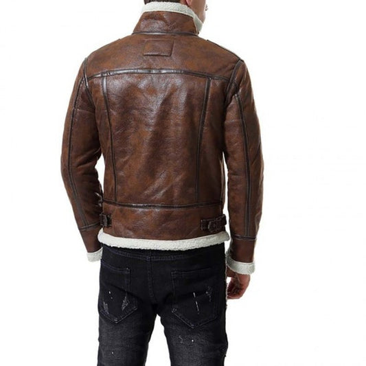 Heren Kunstleren Winterjas | Imitatiebont Voering | Shearling Aviator Style