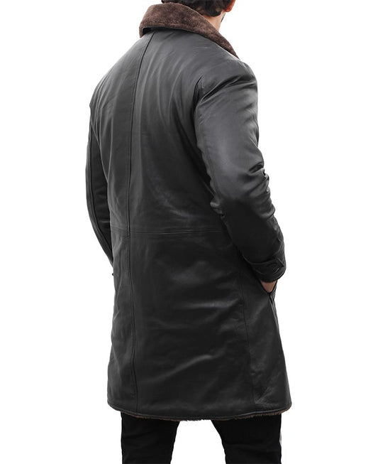 Heren Lange Jas van Kunstleer | Bontvoering | Klassieke Winterlook