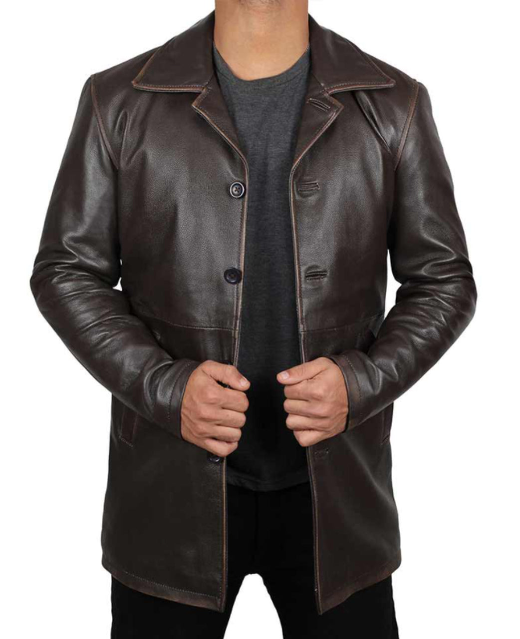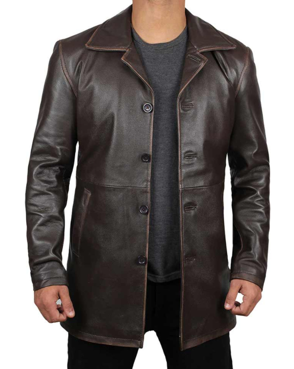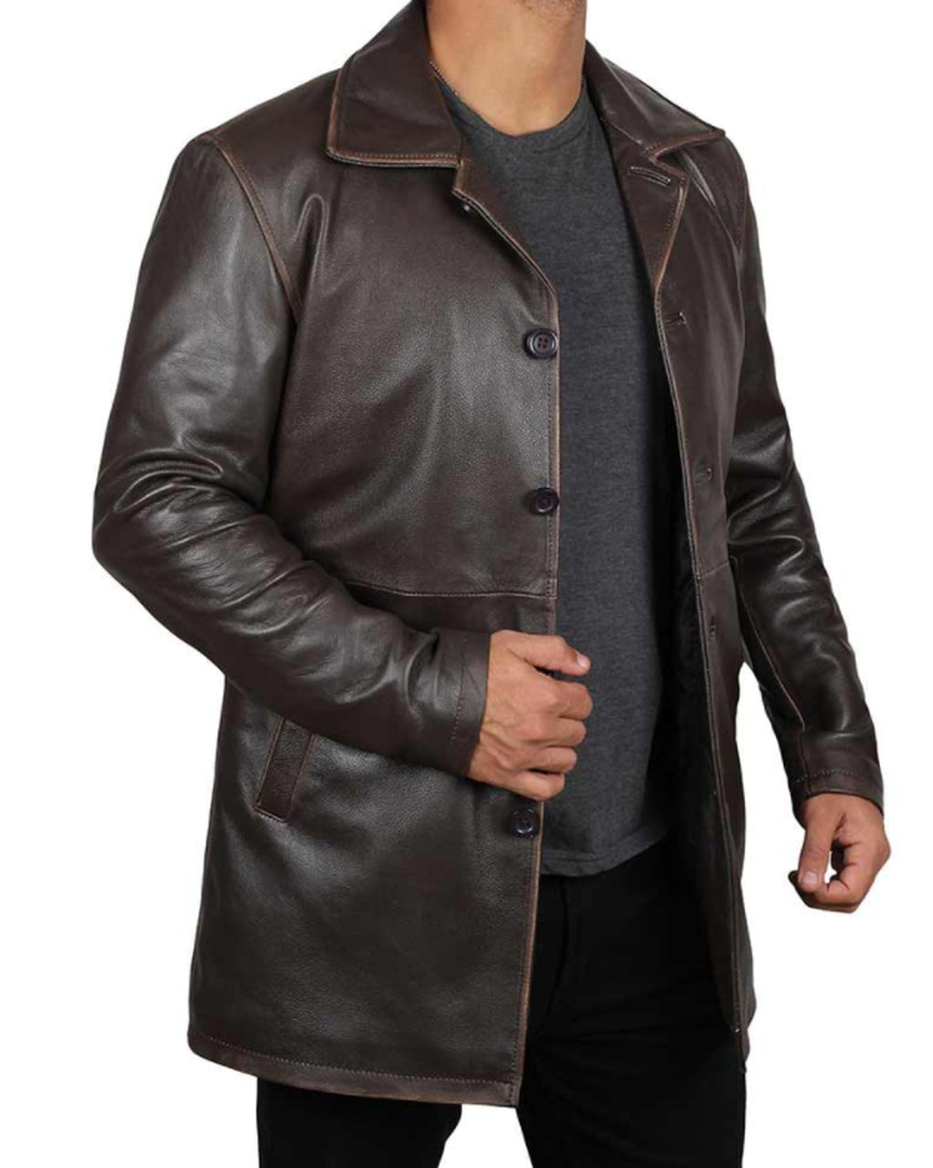 Heren Lange Jas van Kunstleer | Knoopsluiting | Tijdloze Klassieker