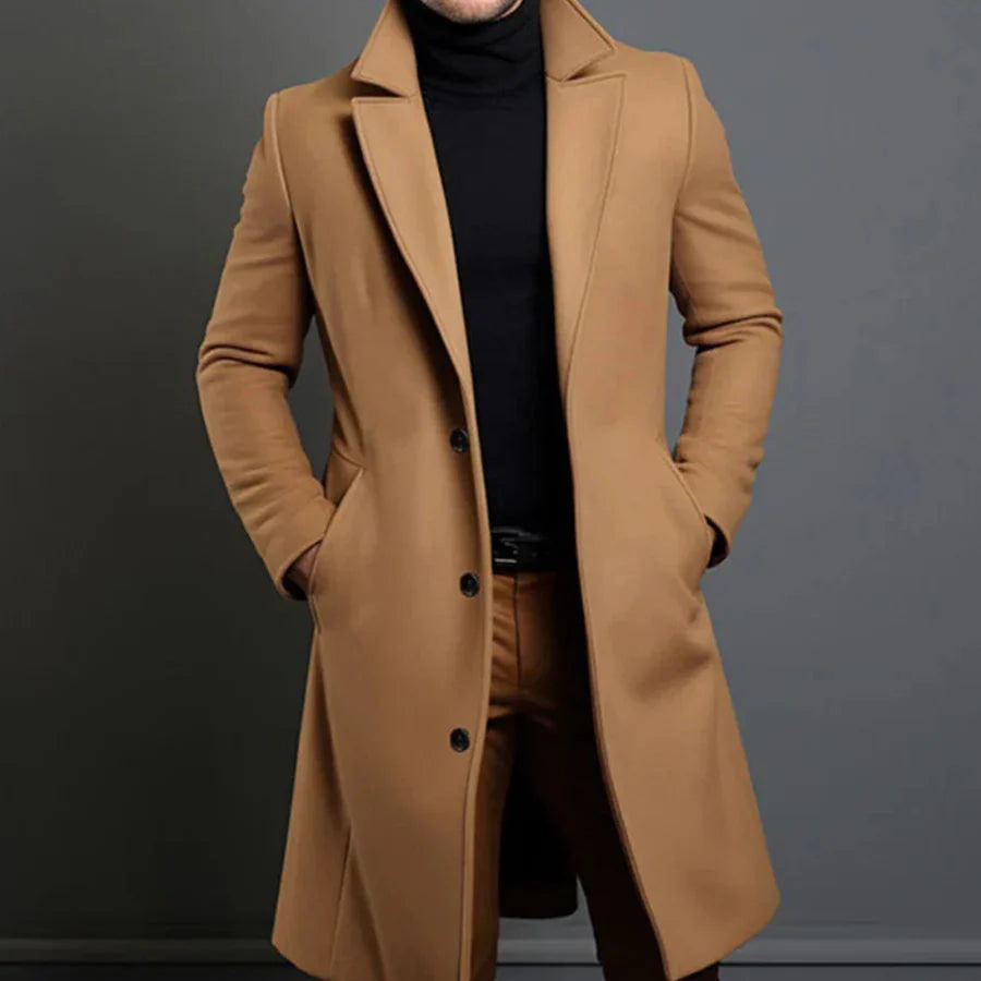Heren Lange Overjas met Reverskraag | Slim Fit | Tijdloos & Chic