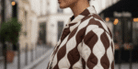 Retro Rhombus Jacket | Grafisch Gebreid | Statement in Bruintinten