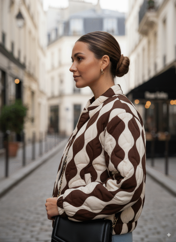 Combineer de Retro Rhombus Jacket met een eenvoudige jeans en loafers voor een casual-chique citylook. Voeg gouden accessoires toe voor een subtiele retro-touch. Perfect voor herfstwandelingen of koffiedates in stijl.