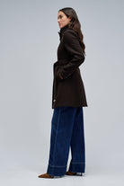 De Structured Belted Coat is een elegante mantel met een moderne, gestructureerde uitstraling. De hoge kraag en strakke lijnen geven deze jas een minimalistische maar krachtige look. De bijpassende ceintuur accentueert de taille voor een vrouwelijke pasvorm, terwijl de diepe chocoladetint zorgt voor een verfijnde, herfstklare uitstraling.