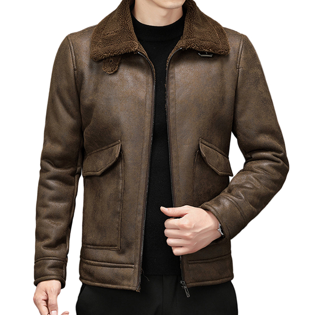 Draag de Vintage Shearling Jacket met een zwarte trui en donkere jeans voor een robuuste winterlook. Perfect voor dagelijks gebruik, herfstwandelingen of een casual avondje uit.
