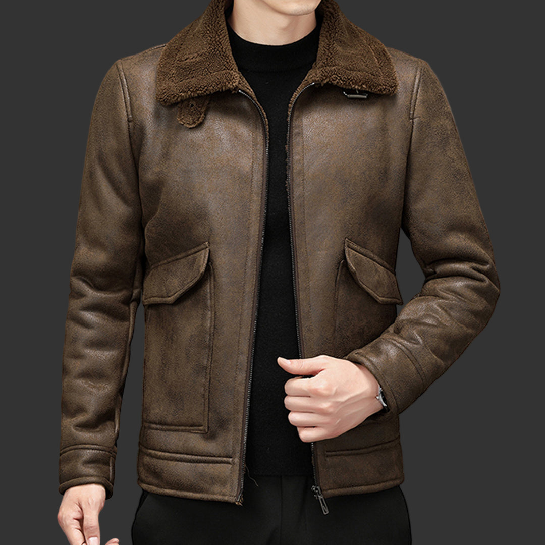 Vintage Shearling Jacket | Ruw Bruin Lederlook | Warme Bontkraag