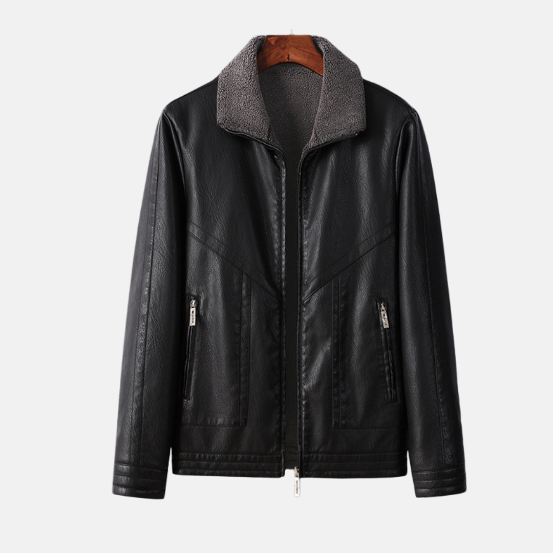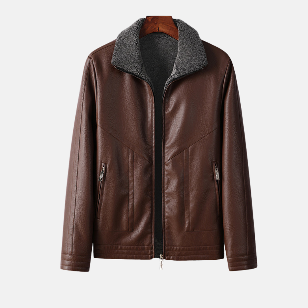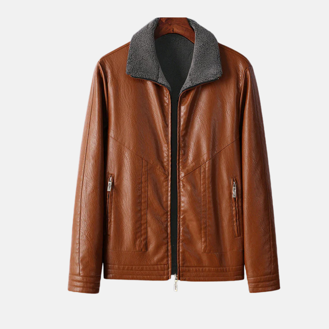 Nordic Lined Leather Jacket | Warme Sherpa Kraag | Tijdloze Herfststijl