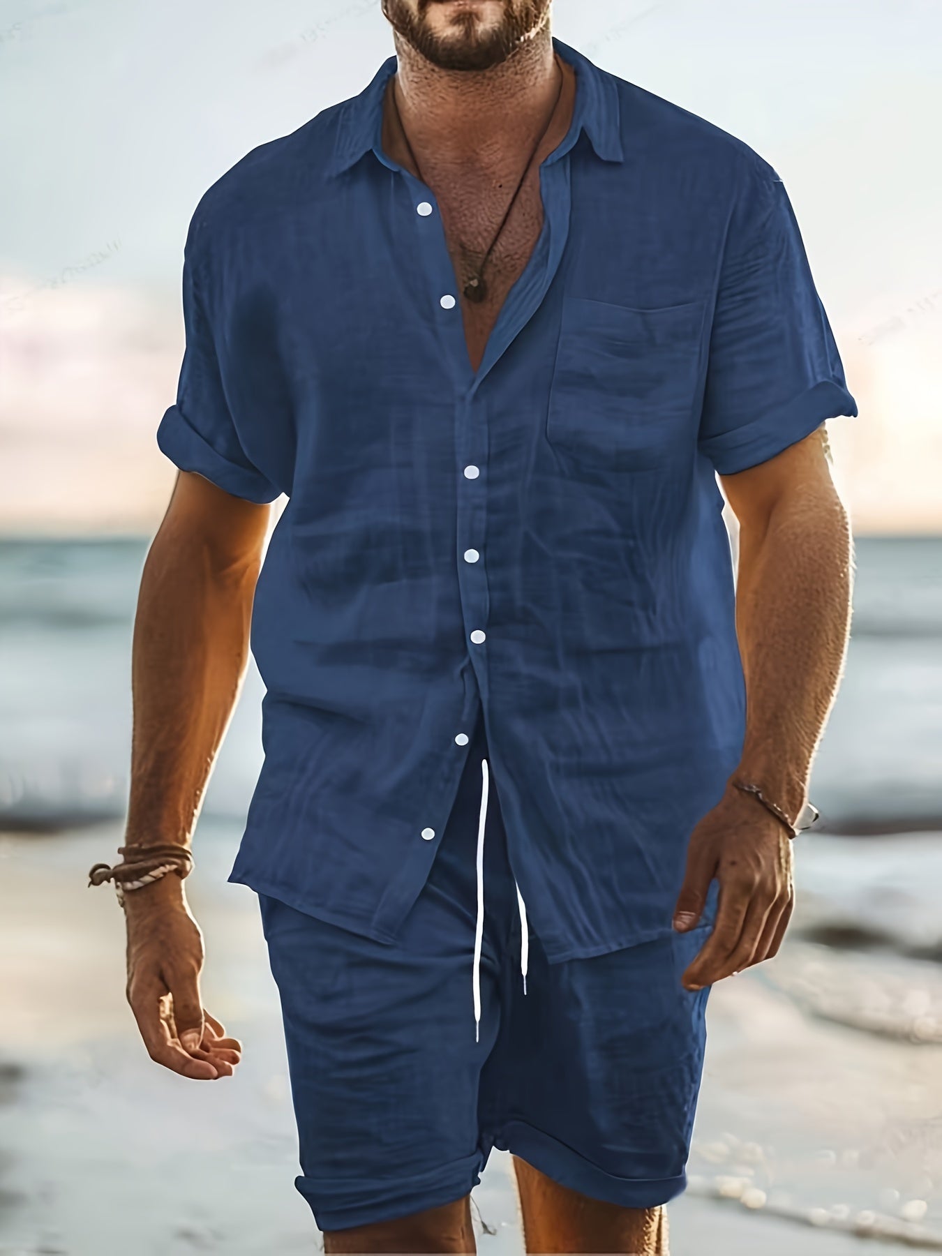 Heren Korte Mouwen Set | Strandlook Co-ord | Lichtgewicht & Casual Chic