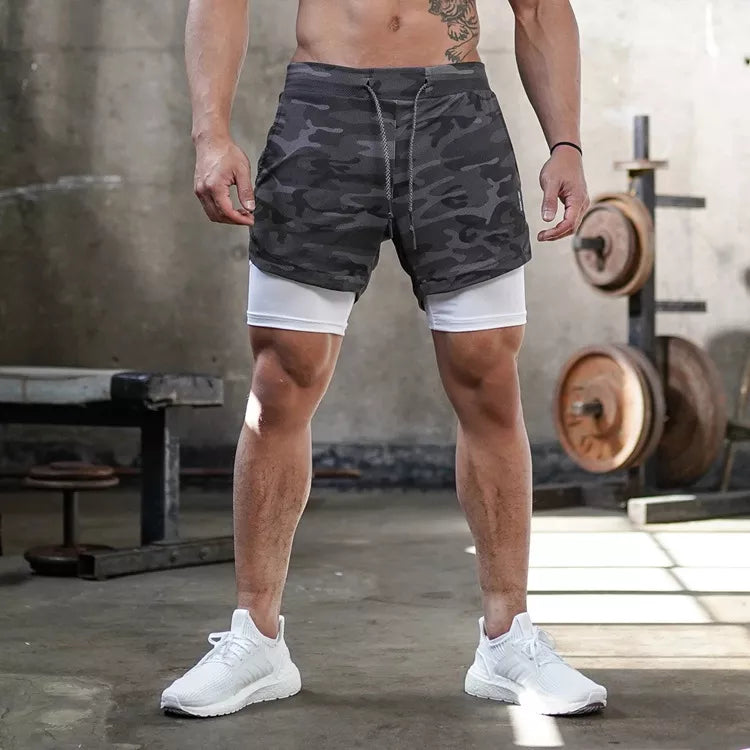 Heren 2-in-1 Fitnessshort | Camouflage Design | Met Binnenzak & Handdoeklus
