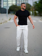 Combineer deze witte jeans met een zwart T-shirt en witte sneakers voor een frisse en moderne uitstraling. Voor een geklede look draag je hem met een overhemd en loafers. Perfect voor casual, smart-casual en zomerse outfits.