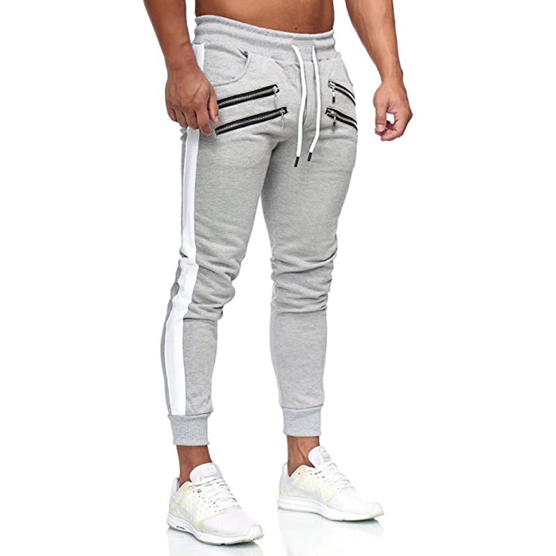 Deze slim-fit jogger is gemaakt van een zachte stretchstof en afgewerkt met unieke details zoals dubbele ritszakken, een decoratieve achterzak en verticale tapestroken langs de benen. De enkelcuffs en elastische taille met trekkoord zorgen voor een comfortabele pasvorm, terwijl het silhouet strak en gestroomlijnd blijft. Verkrijgbaar in kleuren zoals lichtgrijs, zwart, donkergrijs en varianten met witte panelen – perfect voor gym, street of travel.