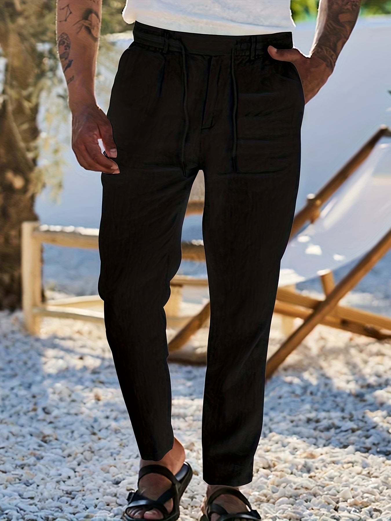 Heren Linnen Broek met Trekkoord | Tapered Fit Resort Style | Ademend Zomercomfort