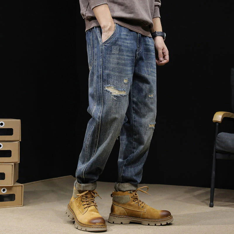 Deze loose fit jeans zijn een eerbetoon aan klassieke denim met een moderne twist. De subtiele scheuren en gewassen look zorgen voor een vintage feel, terwijl de comfortabele pasvorm ideaal is voor dagelijks gebruik. Perfect te combineren met boots of sneakers voor een effortless look. Dankzij het stevige denim en relaxte silhouet is deze broek zowel functioneel als stijlvol.