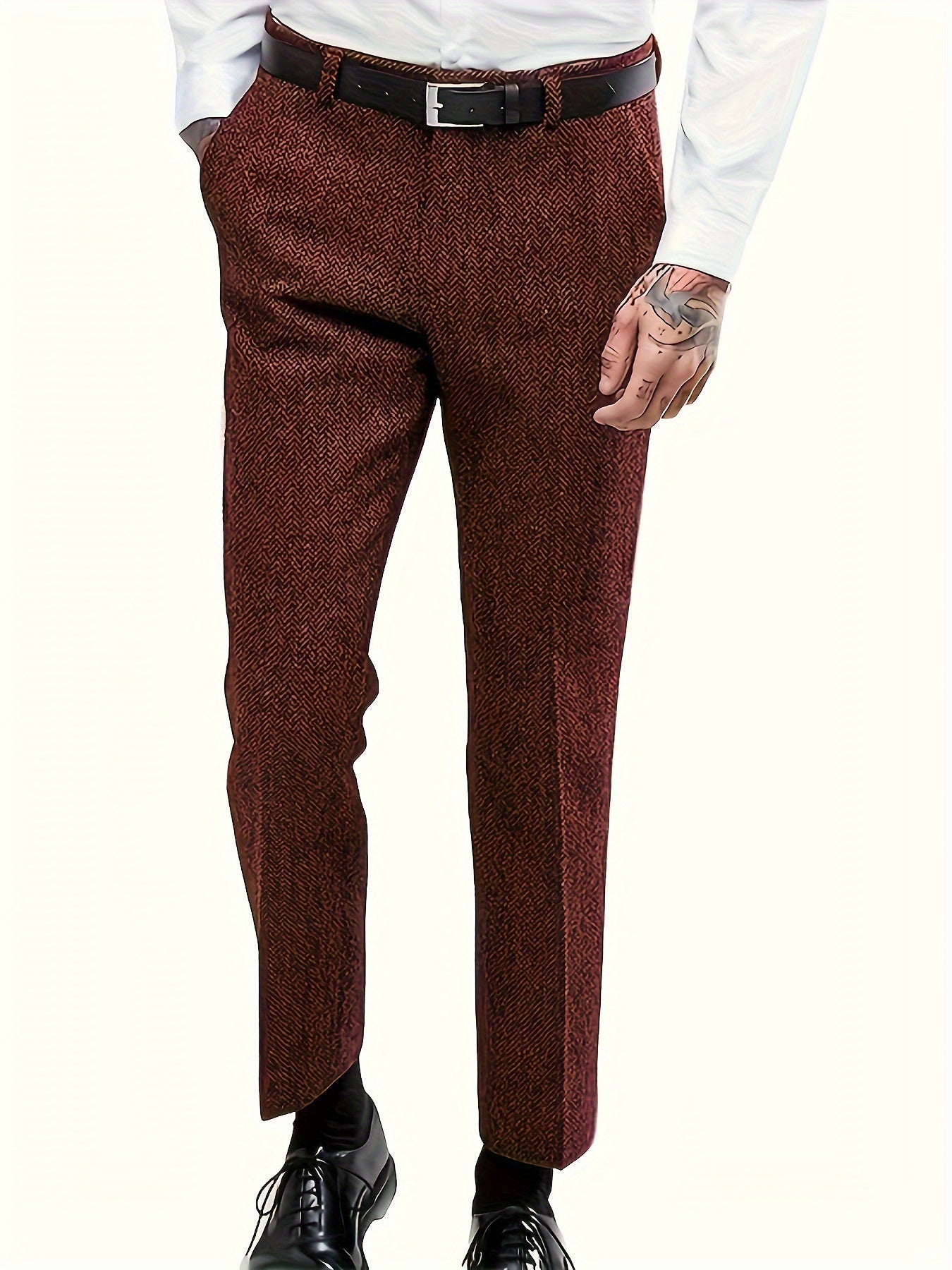 Upgrade je garderobe met deze stijlvolle klassieke herenbroek. Met een slanke pasvorm en hoogwaardige stof biedt deze broek een elegante uitstraling voor zowel formele als casual gelegenheden. Perfect te combineren met een overhemd en blazer voor een zakelijke look of met een trui voor een smart-casual uitstraling.