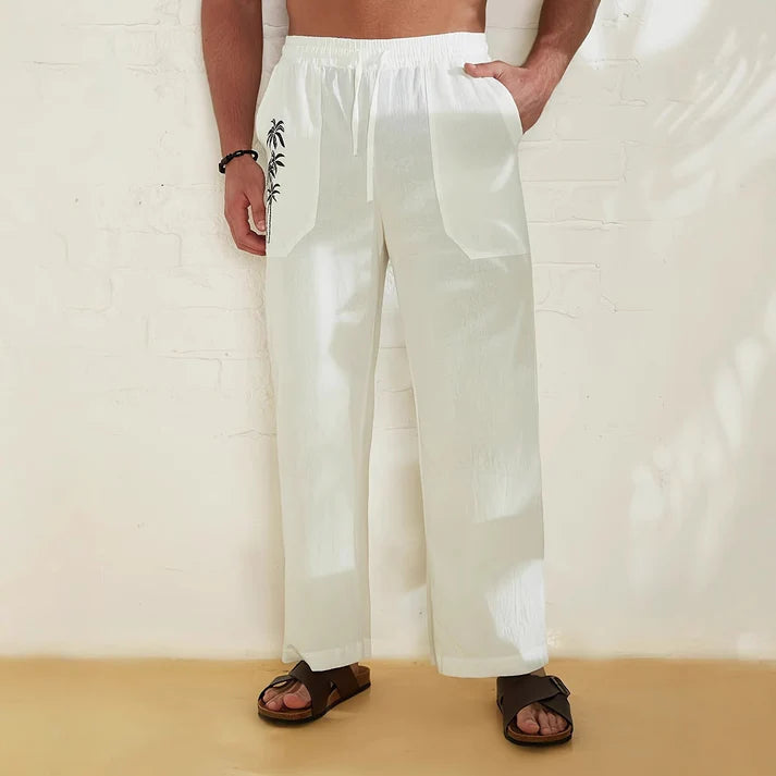 Linnen Broek met Borduursel voor Heren | Breezy Fit | Boho Beach Style