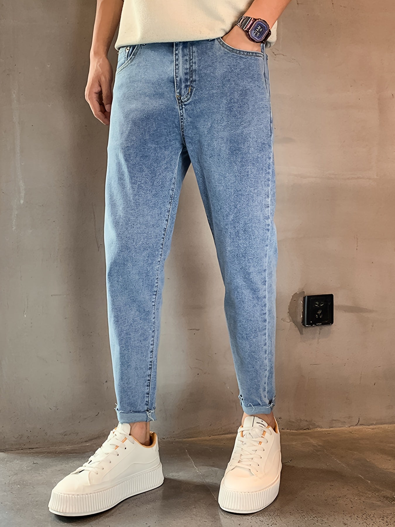 Heren Tapered Fit Spijkerbroek | Lichtgewassen Denim | Minimalistische Stijl