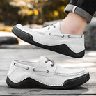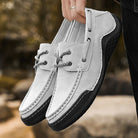 Deze Heren Leren Mocassins bieden de perfecte balans tussen elegantie en comfort. Gemaakt van hoogwaardig leer met een flexibele rubberen zool, zijn deze mocassins ideaal voor dagelijks gebruik. De subtiele veterdetails en handgestikte afwerking geven een verfijnde uitstraling, perfect voor zowel casual als smart-casual outfits.
