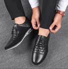 Deze herenschoenen zijn gemaakt voor wie stijlvol én comfortabel de dag wil doorkomen. Het gladde bovenwerk met subtiele textuurdetails en de klassieke vetersluiting zorgen voor een verzorgde uitstraling. De zachte binnenzool en flexibele rubberzool bieden ondersteuning bij elke stap – of je nu op kantoor bent, een formele gelegenheid hebt of je smart casual outfit compleet maakt. Verkrijgbaar in verschillende kleuren zoals zwart, bruin en marineblauw.