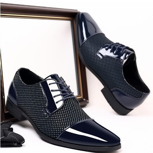 Formele Glanzende Heren Veterschoenen | Lakneus & Textuurstof | Elegant Avonddesign