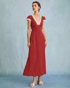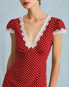 Colette Dress | V-Hals met Kant | Rode Polkadot Midi