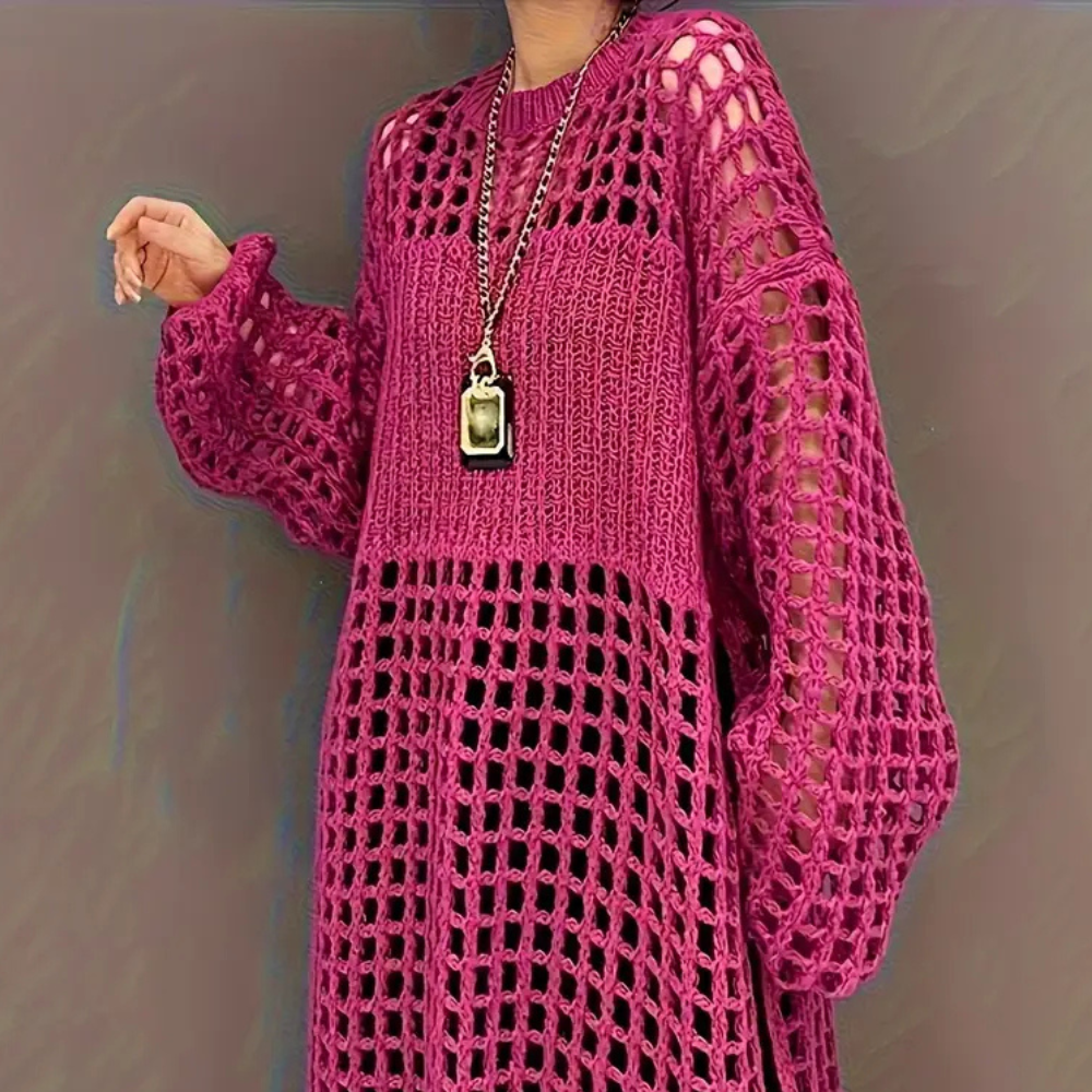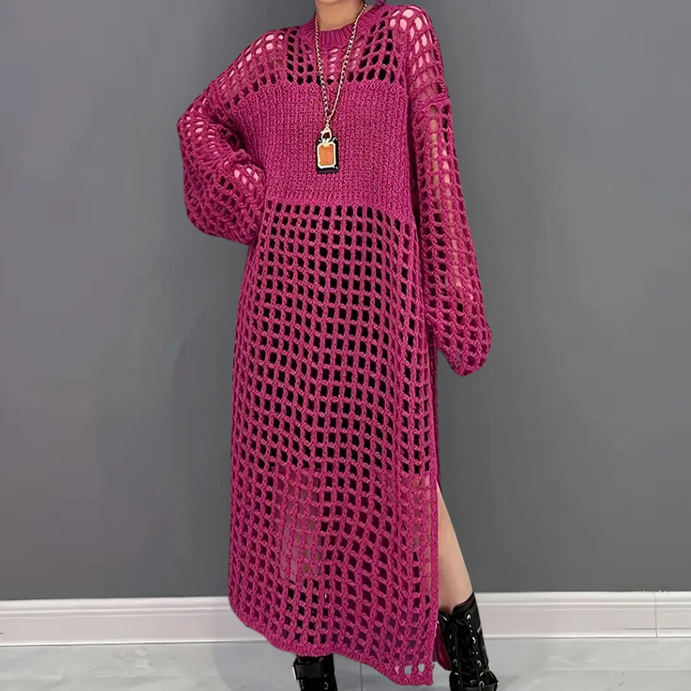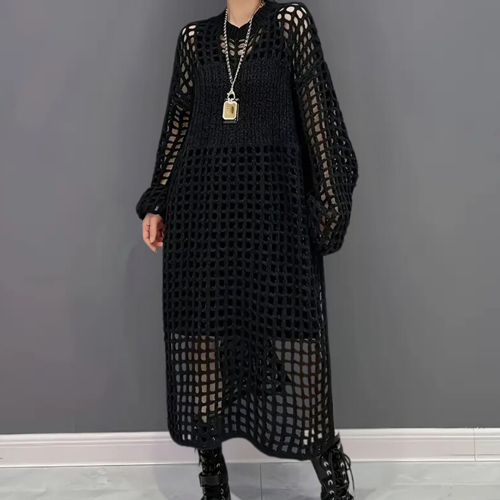 Grid Maxi Dress | Gehaakt Netpatroon | Statement Knit