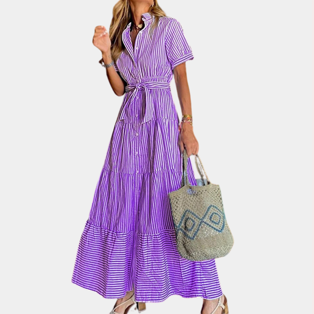 Riviera Dress | Gestreepte Maxi | Shirtstijl & Tailleceintuur
