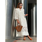 De Riviera Lace Set is de belichaming van zomerse elegantie met een boho twist. Deze tweedelige set bestaat uit een tuniek en wijde broek, beide vervaardigd uit luchtige stof met verfijnd bloemenborduursel. De losse pasvorm en delicate details maken het perfect voor een stijlvolle dag aan zee, op het terras of tijdens een zomerse wandeling.