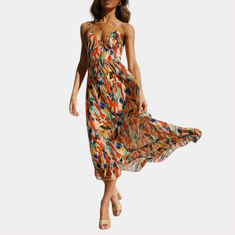 Draag de Solana Jurk met sandalen en een rieten tas voor een relaxte strandlook. Voor een avondstijl combineer je haar met hakken en statement oorbellen. Perfect voor vakanties, tropische feestjes en zomeravonden.